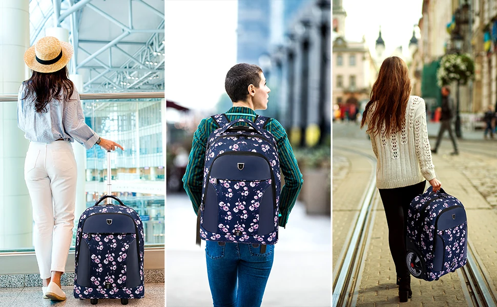 Built for durability and comfort, this rolling laptop backpack is made from water-resistant materials to protect your belongings from spills and light rain. The ergonomic shoulder straps provide comfortable carrying when used as a backpack, while the smooth-rolling wheels and sturdy handle make navigating airports and city streets effortless. Whether you’re heading to the office or catching a flight, this multi-function travel backpack with wheels offers flexibility, organization, and reliable performance for any journey.